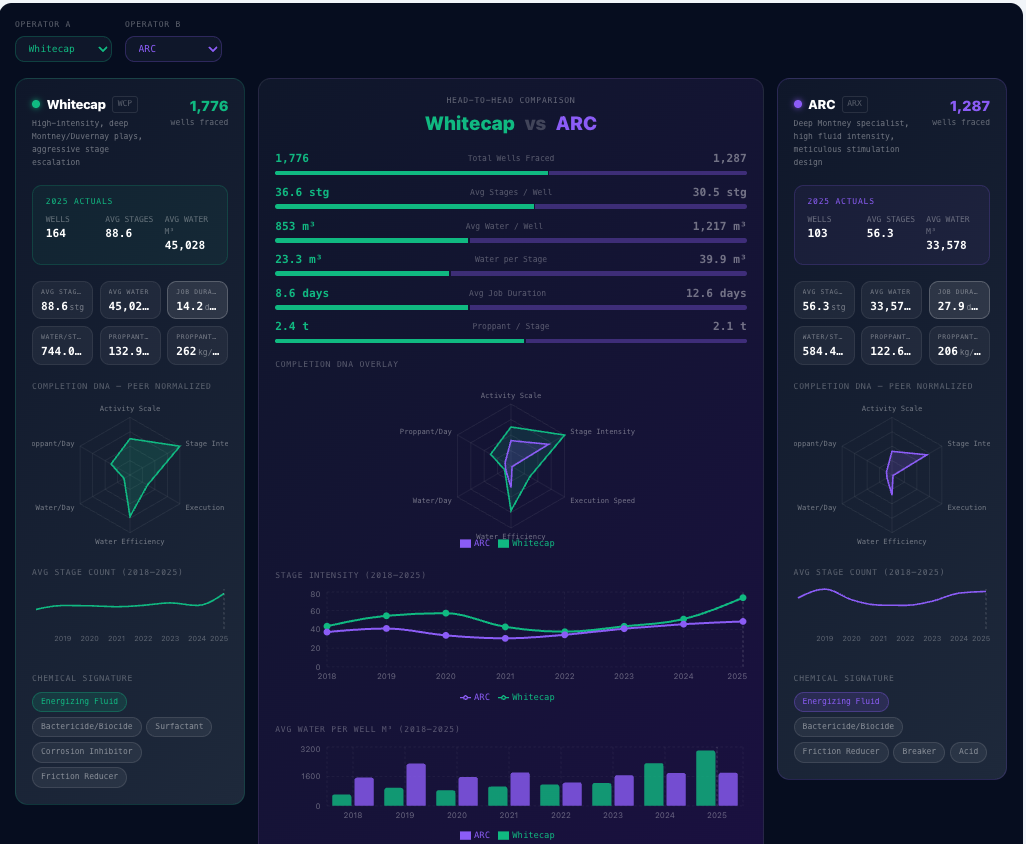 Purpose-built platform for Alberta frac data — operator comparisons, proppant trends, fluid chemistry, and production data in one place.